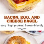 This bacon, egg, and cheese bagel breakfast sandwich is a classic for a reason! It comes together easily and is a satisfying meal that’ll keep you feeling full all morning. High in protein and full of flavor, this freezer-friendly breakfast sandwich is perfect for busy mornings.