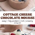 Rich, creamy, and ready in minutes, this cottage cheese chocolate mousse recipe only requires a handful of ingredients to make! It’s the perfect sweet treat that is packed with protein! Decadent and satisfying, you’ll want to make this cottage cheese dessert regularly!
