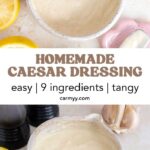 This creamy homemade caesar salad dressing comes together so quickly and easily with a handful of ingredients. Full of flavor, this homemade tangy dressing tastes way better than store-bought! Not just for a caesar salad, drizzle this over some vegetables, pizza, sandwiches, and more!